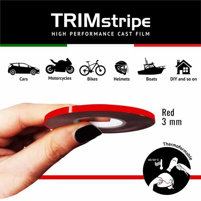Bandes adhésives - trim stripes - rouge - 3 mm x 10 mt - thermoformable - résistant aux intempéries