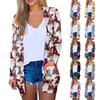 Women's Casual Printed Pocket Long Sleeve Open Coat