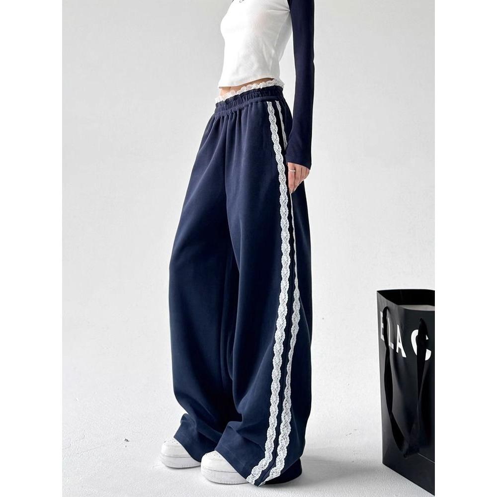 Navy Blue Wide Leg Pants Women Loose Casual Straight Long Pants For Spring Summer