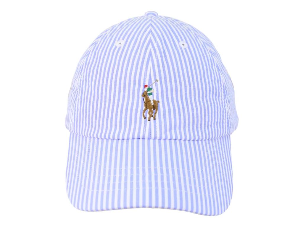 (POLO Ralph Lauren) POLO Ralph Lauren Bărbați Femei Seersucker Dungi Punct Unic Ponei Semnătură Șapcă Pălărie 01080216 ALBASTRU [Folosit]