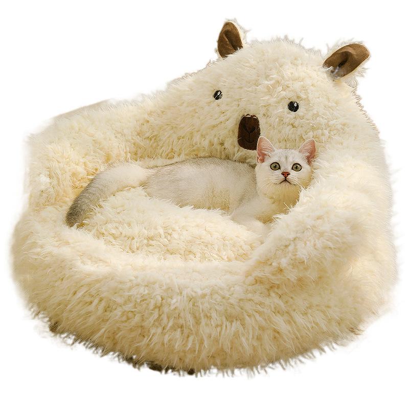 Alpaca Cat Litter Winter Warm Nest with Plush Pads Anti-slip Bottom Raised Edges PP Cotton Joint Relief Cat Bed