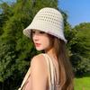 Mesh knitted hollow straw hat summer hat women's sunscreen hat solid color outdoor visor lace fashion bucket hat