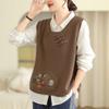Vestă Tricotată de Damă, Nasturi Culturale, Brodată, Nouă de Primăvară și Toamnă, Vestă Pulover cu Gât Rotund