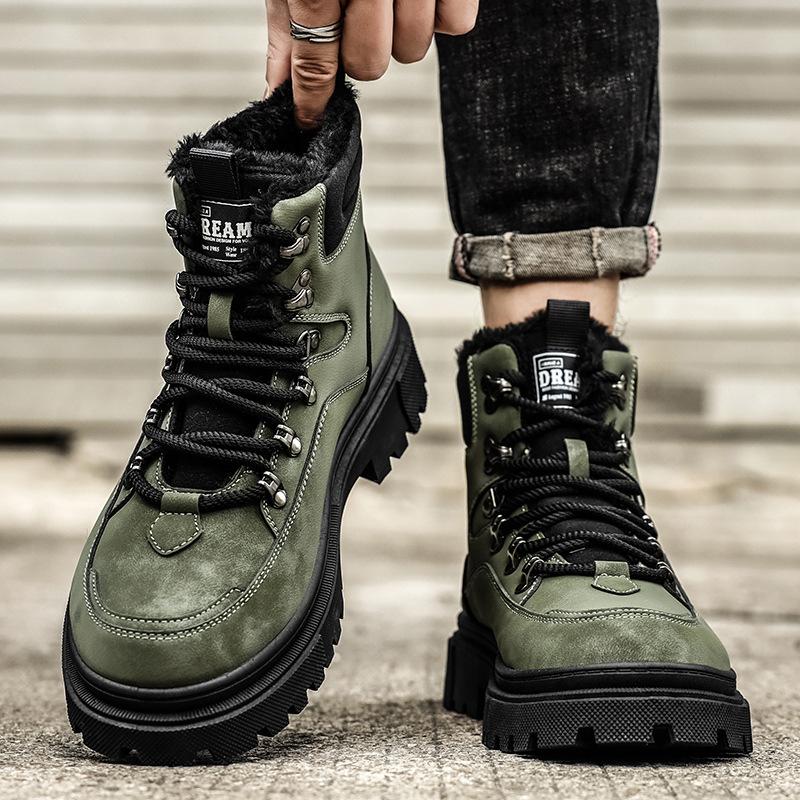 Tooling velvet cotton shoes high-top Martin boots men's new autumn and winter locomotive shoes casual rhubarb boots