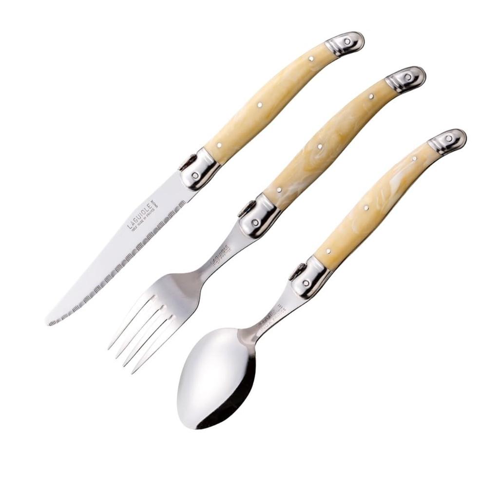 Laguiole cutlery set 3-piece (knife, fork, spoon) (blonde)