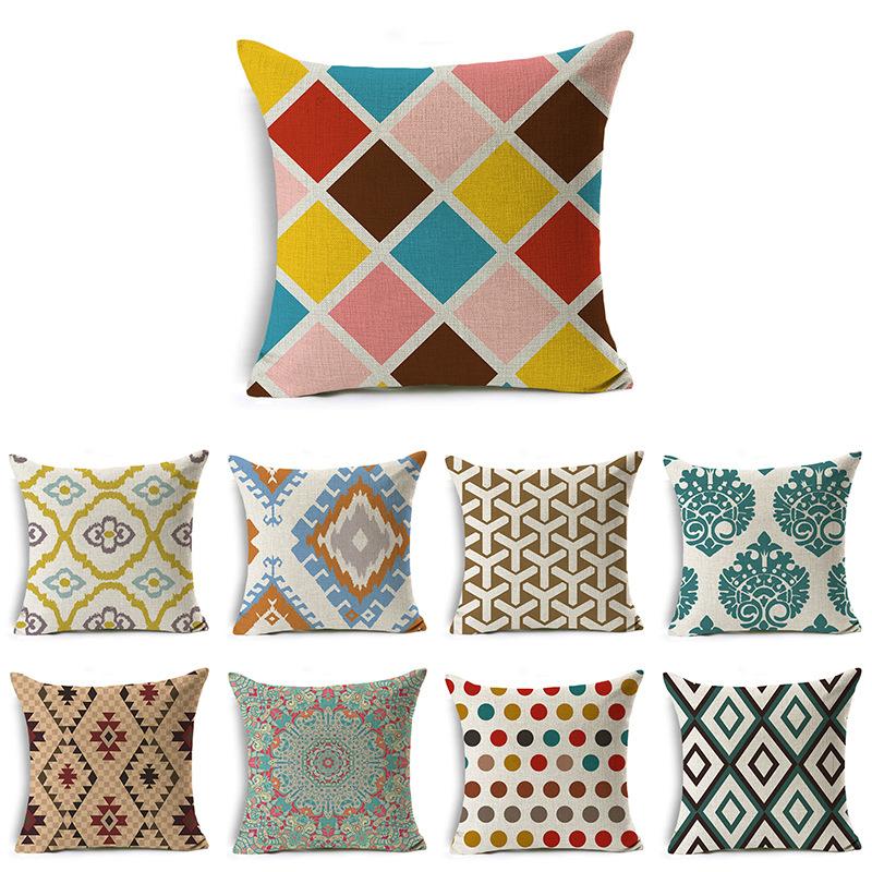 Geometric Cushion Cover Creative Simple Office Linen Pillow Case Modern Style Waist
