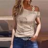 Women Casual Summer Short Sleeve One Shoulder Print Fashion Tops T-shirts Tee