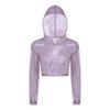 Womens Sparkly Sheer Top Hooded Long Sleeve Cropped Design Loose Fit Tops Club Rave Party