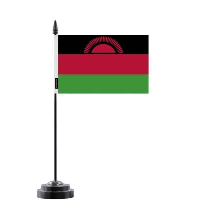 Drapeau de Table du Malawi – 14 x 21 cm – Polyester – Socle en Plastique Noir – Pixelforma