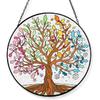 Tuitessine Tree of Life Stained Glass Suncatcher Four Season Theme Colorful Leaves Window Wall Hanging Ornament Hand-Painted Glass Panel Decor Gift