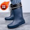 Water shoes high-end medium tube flat-soled rain shoes men's waterproof elastic bundle fixed cotton lint rain boots waterproof rubber shoes