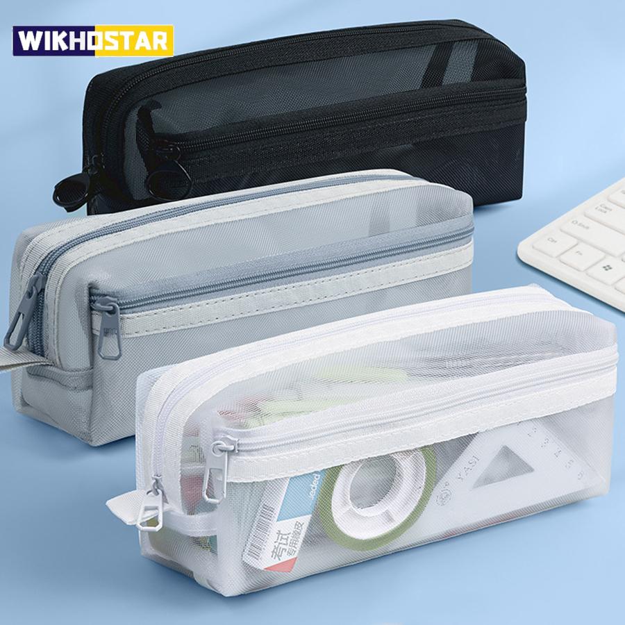 Large Grid Mesh Pencil Case Compartment Pen Bag Clear Handheld Multifunction Pencil Pouch Stationary Transparent Makeup Bag