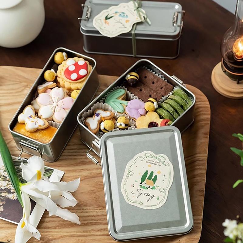 Rectangular Tinplate Cookie Tins Box With Lid Dustproof Home Kitchen Desktop Storage Tin For Candy Coffee Tea Jewelry Chocolate