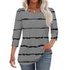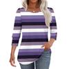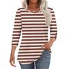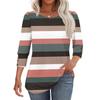 Women's Fashion Casual Striped Print T-shirt Top With Round Neck And Seven Cuff Sleeves