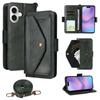 For iPhone 17 Leather Case Magnetic Closure Wallet Stand Phone Cover with Crossbody Strap