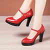 6 8 10cm Small Size 32-43 Shallolw Genuine Leather Shoes Mary Janes 2025 Fall Block High Heels Shoes Platform for Office Dress