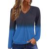 Women's Casual Fashion V-Neck Raglan Pleated Solid Color Long Sleeve Top