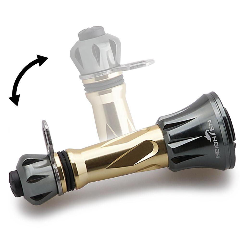 [Features] 1) Convenient folding type (pull out and bend 90 degrees to lock and fold, can rotate 360 degrees when folded, spring structure returns to standing position with a light push), 2) Silica gel tip to place reel and protect it from scratches, 3) Compatible with Shimano & Daiwa, 4) Luminous cap included, 5) Hook keeper, hook holder, 6) Line stopper, 7) Blocks water intrusion. [Product specifications] Body length: 50mm, folded length: 25mm. Weight: 9.3g, Material: Aviation aluminum, corrosion resistant, safe for sea fishing. [Compatible models] Compatible with Shimano (SHIMANO) / Daiwa (DAIWA) screw-in reels (2 types of sockets included). [Accessories] 1 Shimano socket (pre-installed on the product), 1 Daiwa socket, 1 luminous cap. [Convenient folding type] Spring structure, pull out and bend 90 degrees to fold, 360 degrees when folded, spring structure allows for light push to return to standing position. [Place reels on and protect them from scratches] The tip of the cap has a part made of silica gel that is resistant to friction, making it a reel stand that protects delicate lines and reels from scratches. [Luminous cap] Repeated use