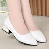 Pantofi damă de vară 2025 din piele moale cu toc gros, cu vârf ascuțit și toc mic, pantofi de birou albi pentru ținută de lucru, mărimi 35-41