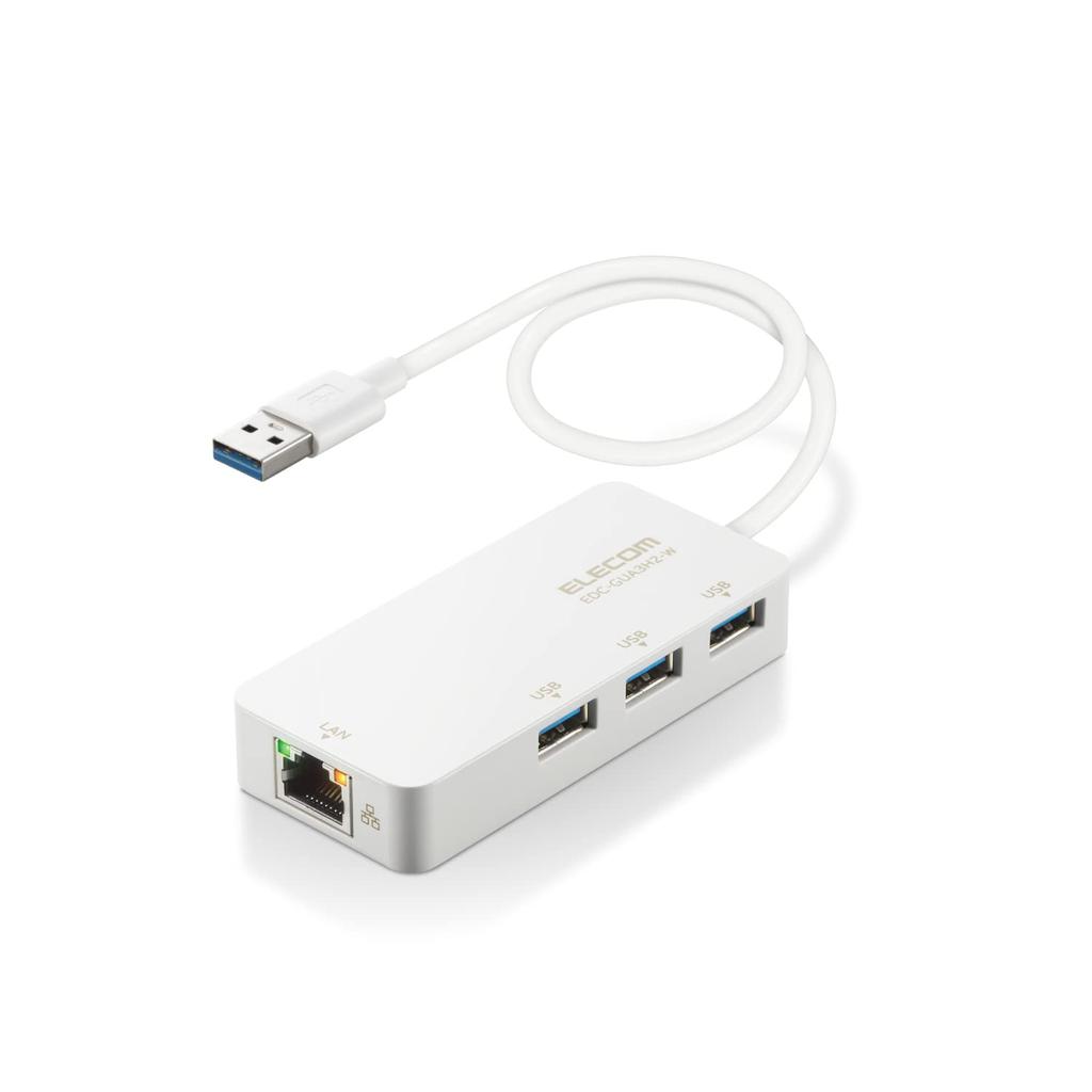 ELECOM Adaptor LAN cu fir USB la RJ45 Adaptor de conversie Gigabit Hub USB x 3 cu Windows macOS Alb USB3.0 USB-A (Porturi USB-A) [Compatibil 11/10/8.1,
