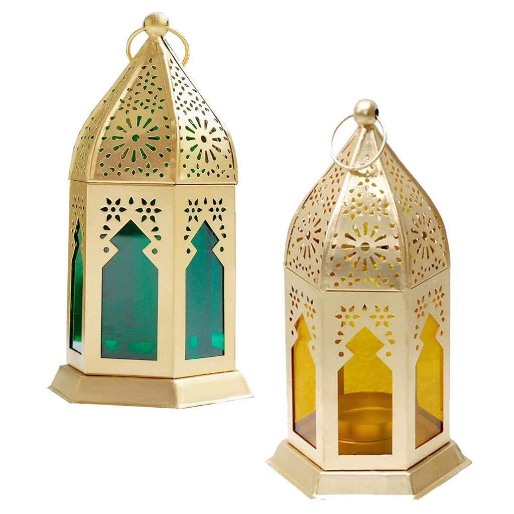 Frumos Felinar decorativ lampă Suport de lumânare Felinar suspendat Suport pentru lumânare tip pastilă pentru Diwali Suport decorativ metalic pentru lumânare (Galben verde)