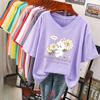 Tricou cu mânecă scurtă, Croială largă, Top subțiere cu gât în V imprimat pentru femei