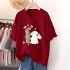 Tricou cu mânecă scurtă, Croială largă, Top subțiere cu gât în V imprimat pentru femei