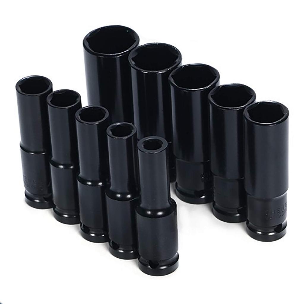 12.7mm 1/2 inch deep socket set of 10 for ratchet impact, ideal for car and motorcycle maintenance. This long socket is ideal for places that cannot be reached with a normal wrench or when space is limited. The socket is 78mm long, so you can tighten bolts in narrow places. Made of chrome vanadium steel, which makes it easy to remove rusty bolts, it is a high-performance socket that can withstand the high torque required to remove rusty bolts, as it is difficult to break even when a large torque is applied. This socket set is ideal not only for car and motorcycle maintenance, but also for DIY, furniture disassembly, and assembly in tight spaces. Made of chrome vanadium steel, the surface is treated with rust-resistant parkerizing (phosphate coating), making it a tool that is resistant to wear and rust. [Wide variety of socket size sets] (1) 8-17 size set: 8mm, 9mm, 10mm, 11mm, 12mm, 13mm, 14mm, 15mm, 16mm, 17mm (2) 8-19 size set: 8mm, 10mm, 12mm, 13mm, 14mm, 15mm, 16mm, 17mm (3) 10-24 size set: 10mm