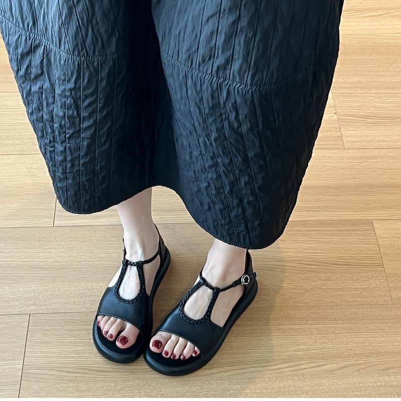 Great and Easy To Wear Without Tiring Feet Retro Woven Soft Sole Casual Outside Wearing Flat Sandals for Women In Summer New Thick-soled Roman Shoes