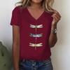 Summer V-neck 3D Dragonfly Pattern Printed Top Fashionable Casual Short Sleeved Women's T-shirts