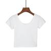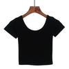 Top Crop Slim cu Talie Înaltă în Stil Coreean - Tricou cu Mânecă Scurtă și Buric la Vedere pentru Femei