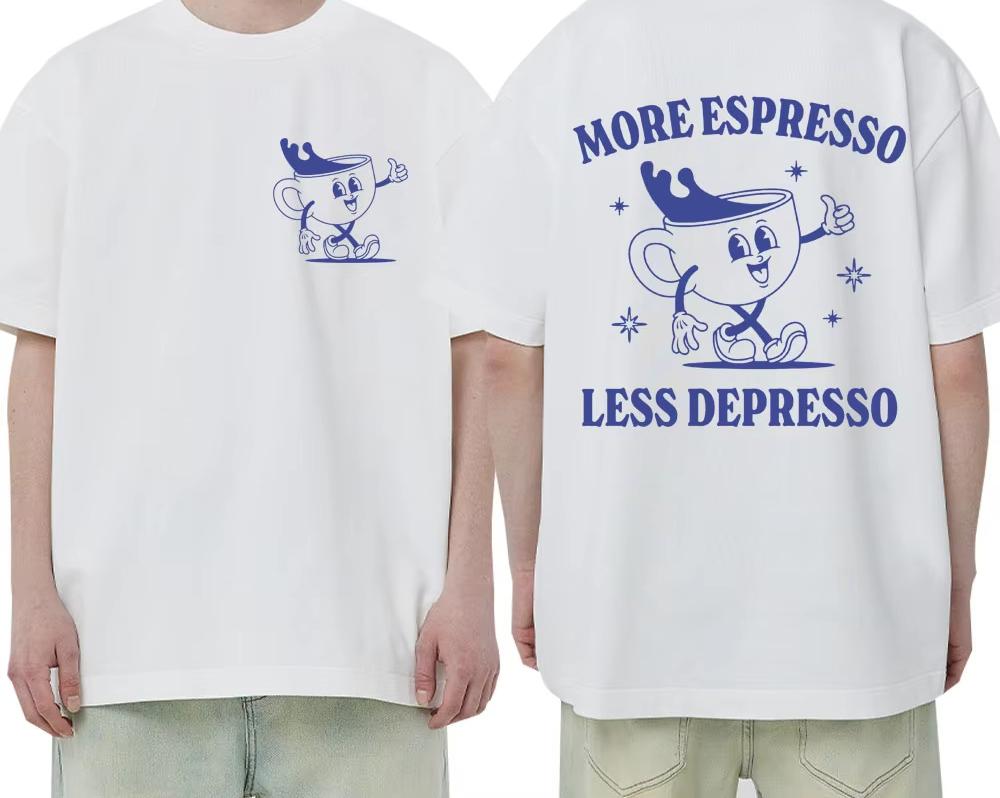 More Espresso Less Depresso Print T Shirt Men Women Fashion Funny Coffee Meme T-shirt 100% Cotton Casual Oversized Y2k T Shirts