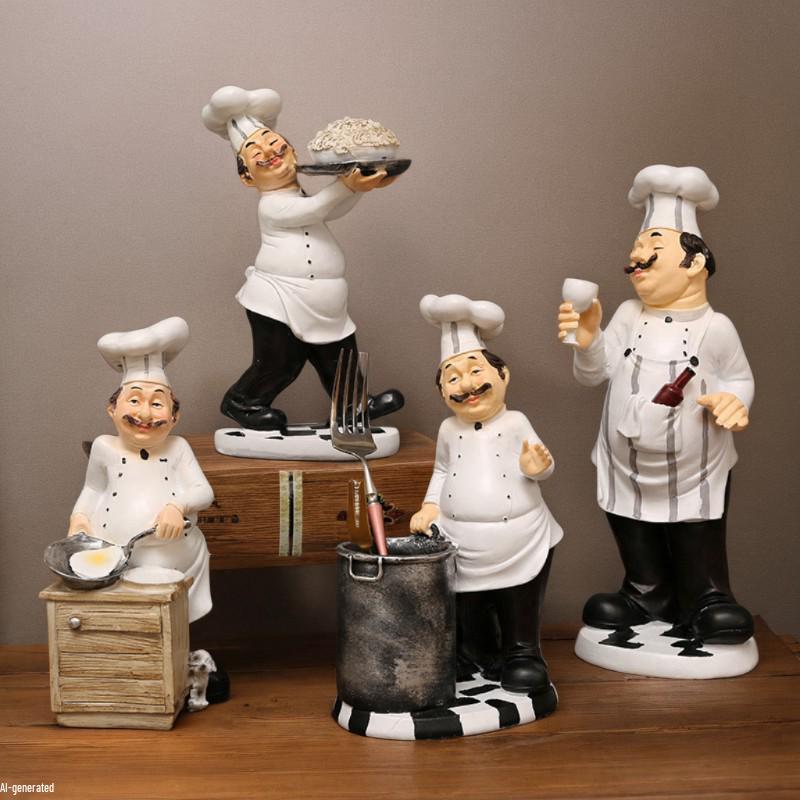 Adăugați o notă de farmec vintage bucătăriei sau zonei de luat masa cu acest ornament de bucătar cu design unic. Confecționată din rășină durabilă, această piesă decorativă elegantă de masă îl înfățișează pe un bucătar american clasic, făcând-o o adiție ideală pentru casa, restaurantul sau cafeneaua dumneavoastră.. Detaliile sale complicate și aspectul retro nu doar îmbunătățesc atractivitatea estetică, ci creează și o atmosferă caldă și primitoare.. Perfect pentru cei care apreciază artele culinare și designul nostalgic, acest ornament va încânta cu siguranță oaspeții și va lumina orice spațiu.