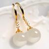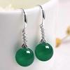 Modă Coreeană Cercei Atârnători cu Jasp Verde Placați cu Aur Alb