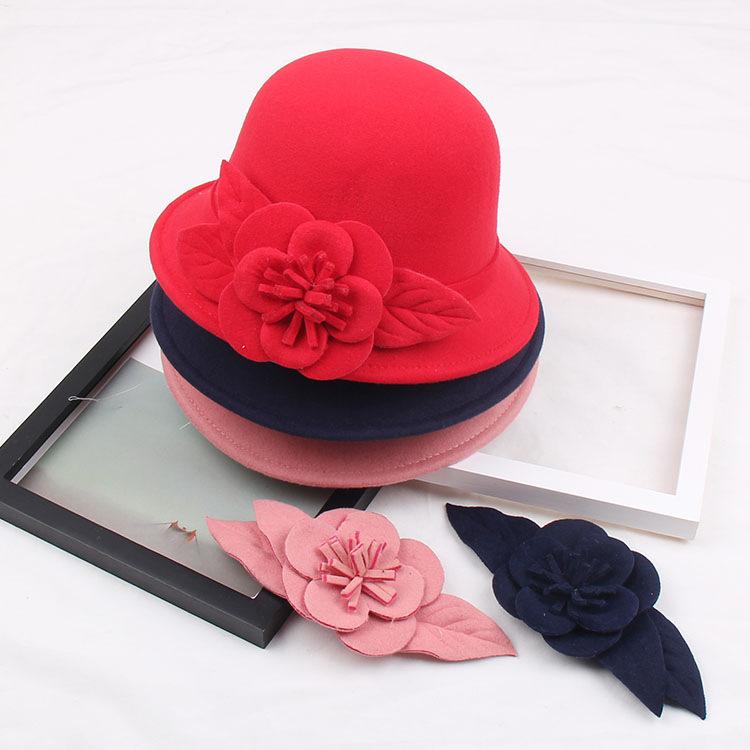 Autumn And Winter Woolen Hat, Women'S Three-Dimensional Big Flower Dome Fashion Hat Temperament Top Hat