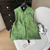 Retro buckle green vest women 2025 early spring jacquard zen improved vest