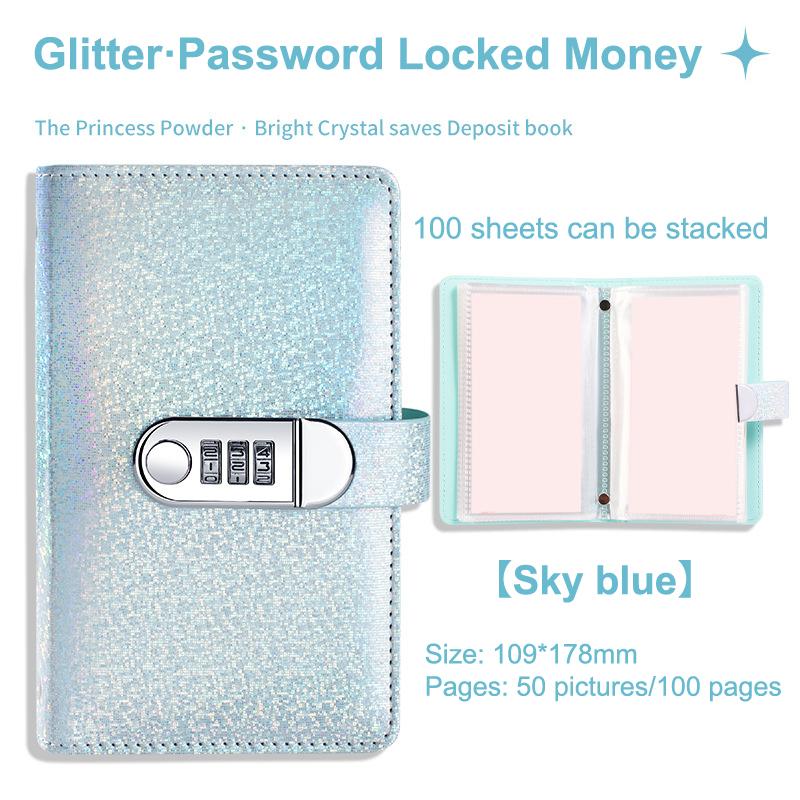Piele PU Provocarea celor 100 de plicuri Liant de economii Copertă laser cu blocare prin parolă Caiet pentru economisirea banilor Carte financiară reutilizabilă