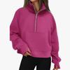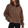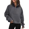 Mâneci umăr, Jachetă largă de fleece pentru femei, toamnă și iarnă, Cămașă cu jumătate fermoar, Hanorac cu mâneci lungi