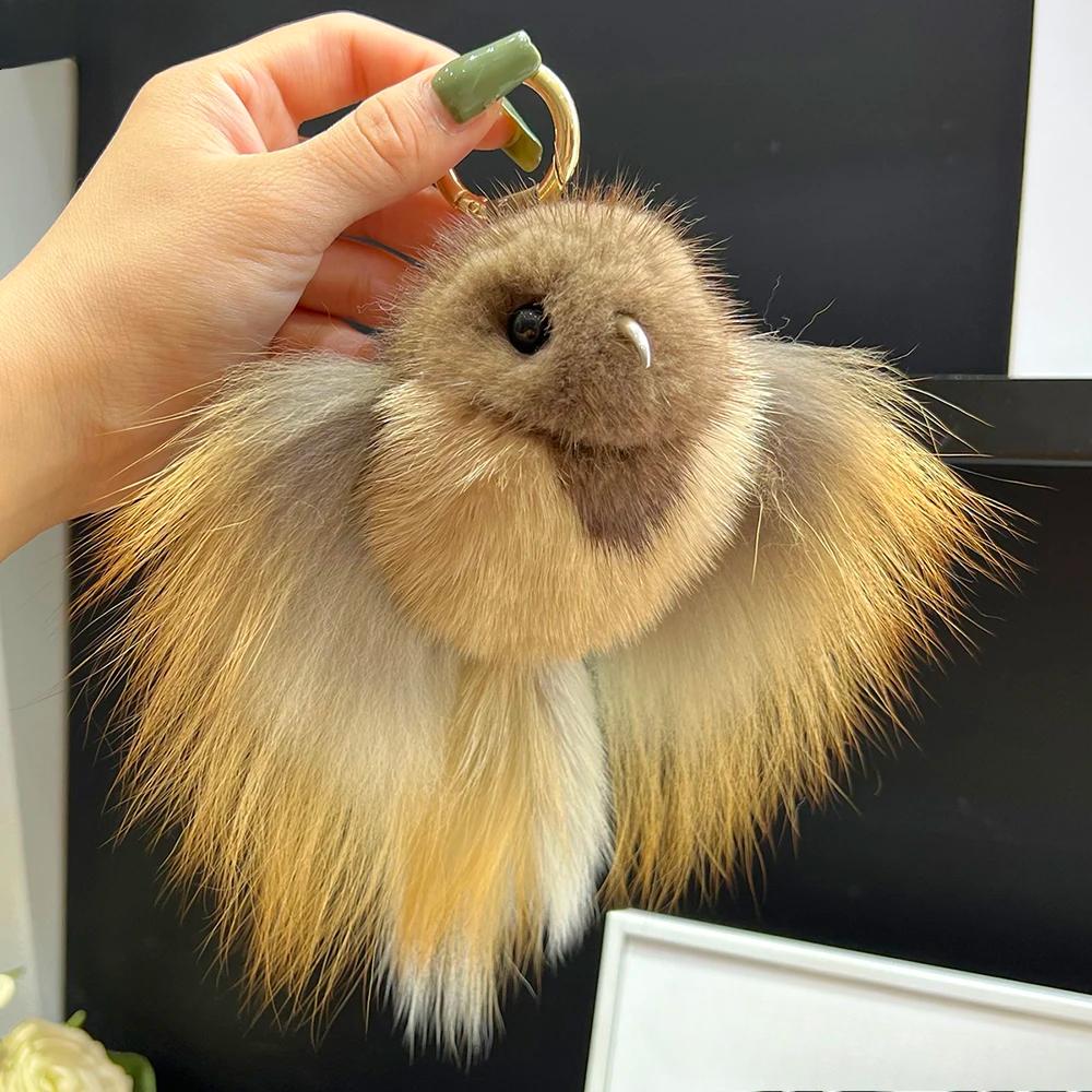 Mink Fur Keychain Men Annunciation Bird Pendant Keyring Bag Key Ornament Genuine Fur Toys Pom Pom Trinket Gifts Women