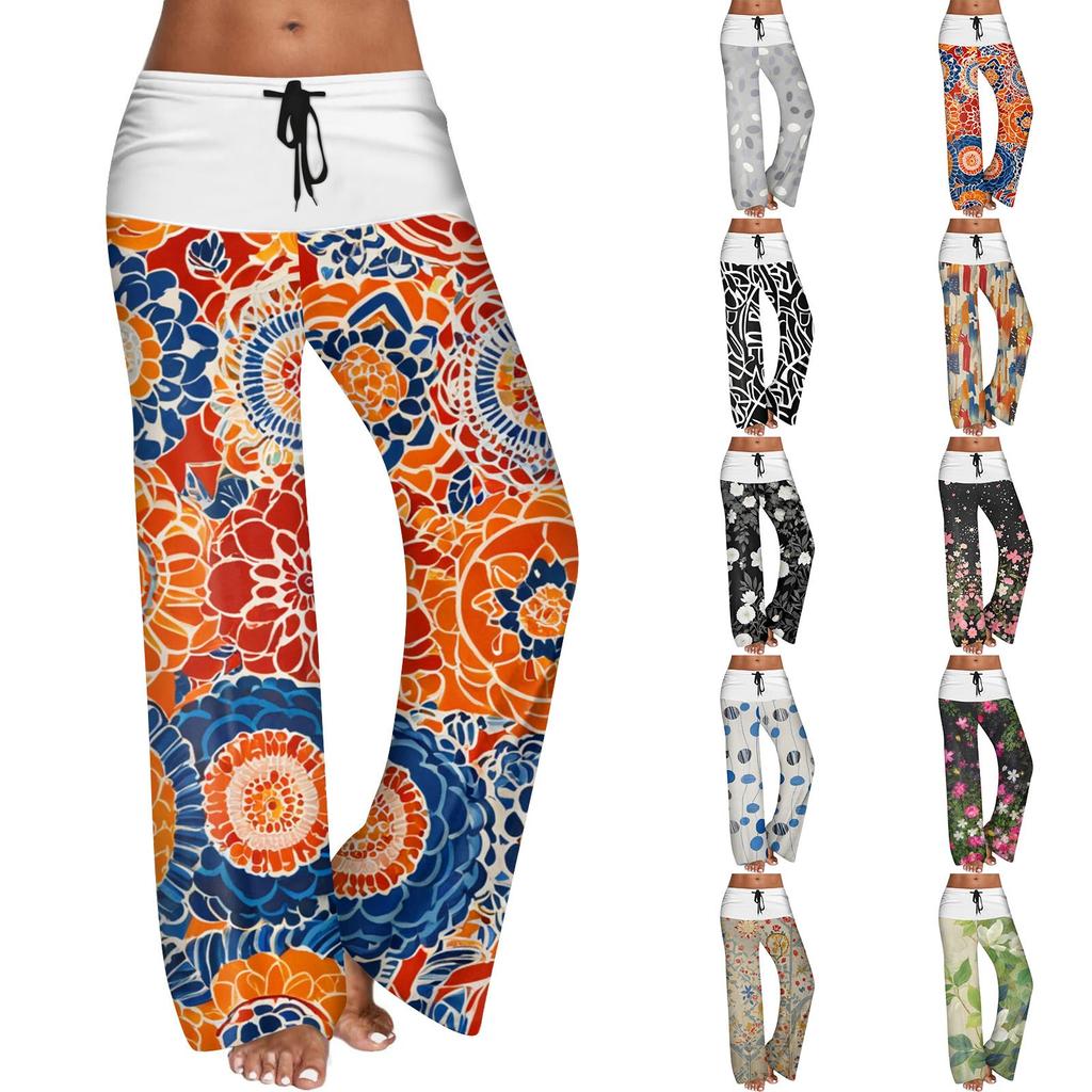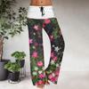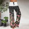 Pantaloni Casual Largi cu Talie Elastică cu Șnur pentru Femei, cu Imprimeu Floral și Blocuri de Culoare