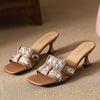 Sandals Women's Shoes High Heels Fashionable Shoes Thin-heeled Heat-absorbing Half-slipper