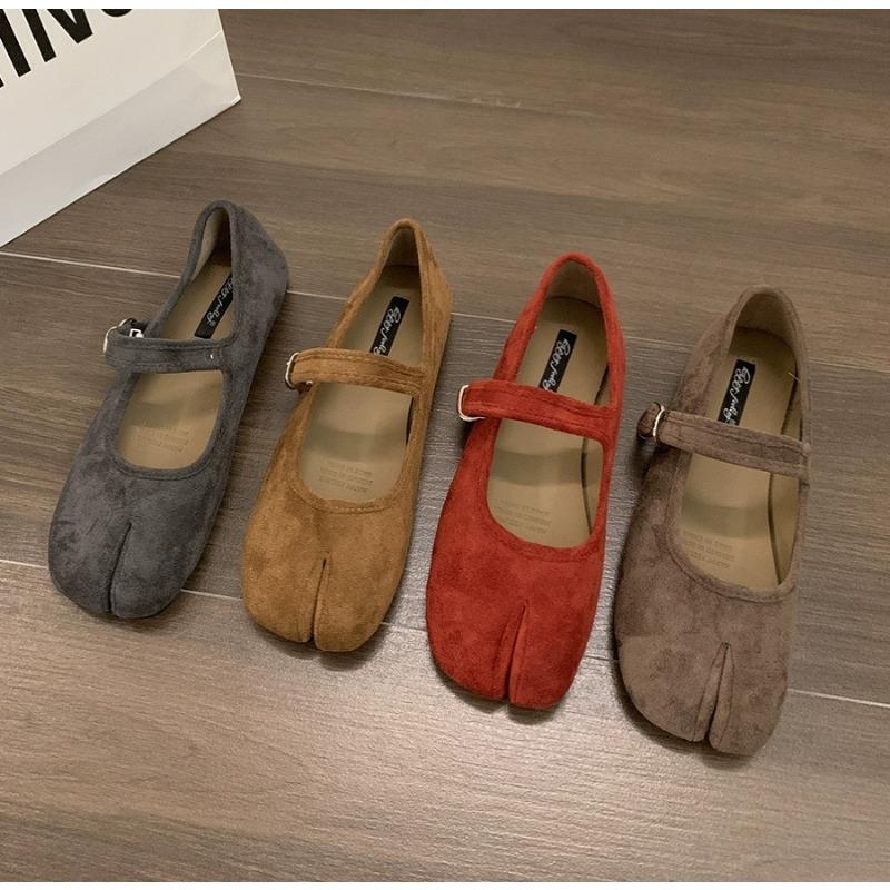 2025 Pantofi Tabi Ninja în stil japonez pentru femei, retro, din piele întoarsă, cu vârfuri despicate, pantofi de barcă, Mary Jeans, mocasini, balerini