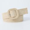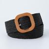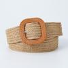 Curea de talie elastică împletită din paie, cu cataramă pătrată în culori bomboană în stil Mori coreean, pentru femei