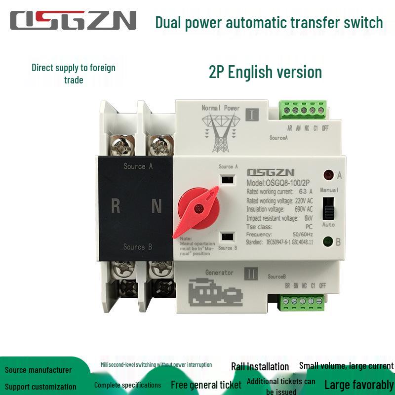 Comutator Automat de Transfer Dublă Alimentare 2P 80A/100A/125A - Milisecundă Neîntrerupt Rețea Generator Convertor