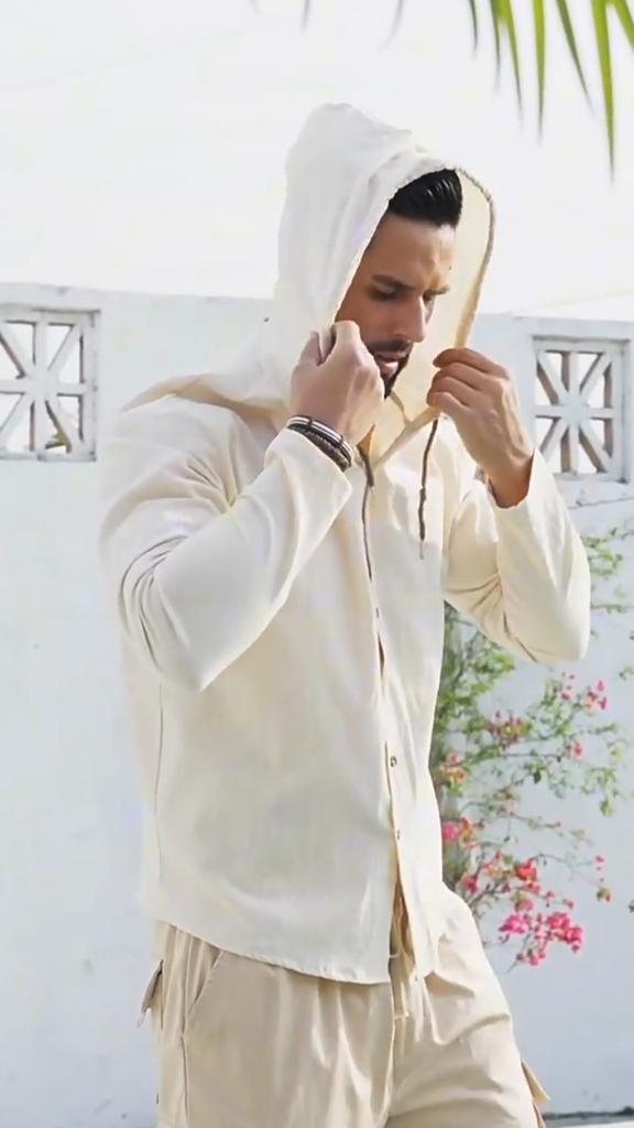 Spring and Summer Men's Hooded T-shirt Solid Color Cotton Linen Men's Casual Long Sleeved Top