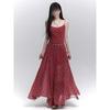 Girls' high-end elegant red plaid suspender dress women's summer new casual temperament waist and thin dress