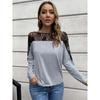 Women's Hollow-Out Lace Trim Sexy Top, Long Sleeve T-Shirt, Casual, Versatile