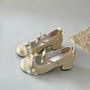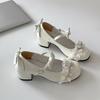 Pantofi drăguți din dantelă JK pentru femei, pantofi Mary Jane, pantofi de piele cu fundă papion la modă, pantofi cu toc pentru rochie de petrecere pentru exterior pentru femei