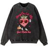 Ms Strawberry Went Shopping Womans Vintage Washed Cotton Sweatshirt Autumn Loose Pullover Casual Thin style Crewneck