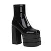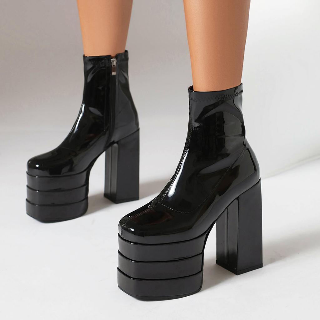 Mărimi Mari Bot Pătrat Platformă Ultra-Înaltă cu Trei Straturi Decupate Tocuri Groase Modă Populară Glezniere cu Fermoar Cizme de Damă